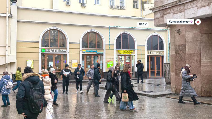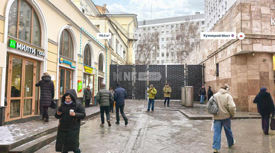 Помещение свободного назначения формата Street Retail в ЦАО Москвы. 1 минута пешком до станции метро Кузнецкий мост. 1-я линия домов. Сверхинтенсивный пешеходный трафик вдоль помещения в течение всего дня. Отличная видимость. Состояние помещения: под чистовую отделку. Мощность: по запросу. Есть вытяжка.